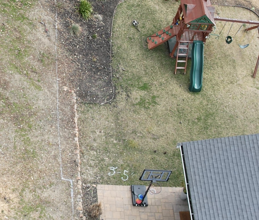 - Hillside mulched with shrubs, trees, and drip irrigation