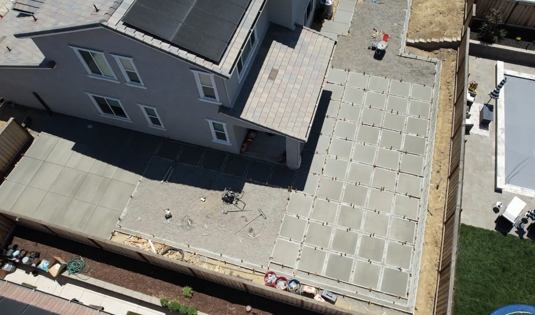 - Broom finish concrete patios, walkways, and square steps with turf strips